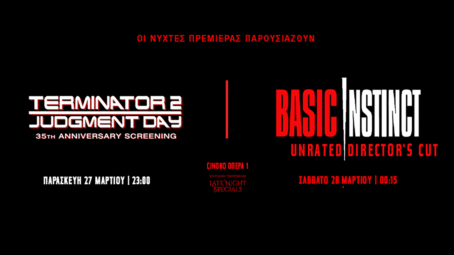 Συνεχίζοντας τον εξαιρετικά δημοφιλή κύκλο προβολών «LATE NIGHT SPECIALS», οι Νύχτες Πρεμιέρας γιορτάζουν την Παρασκευή 27 Μαρτίου τα 35α γενέθλια μιας από τις καλύτερες περιπέτειες φαντασίας που έγιναν ποτέ και σας προσκαλούν να δείτε, το Σάββατο 28 Μαρτίου και για πρώτη φορά, το χωρίς περικοπές DIRECTOR'S CUT του πιο περιβόητου ερωτικού θρίλερ στο μοντέρνο σινεμά.
