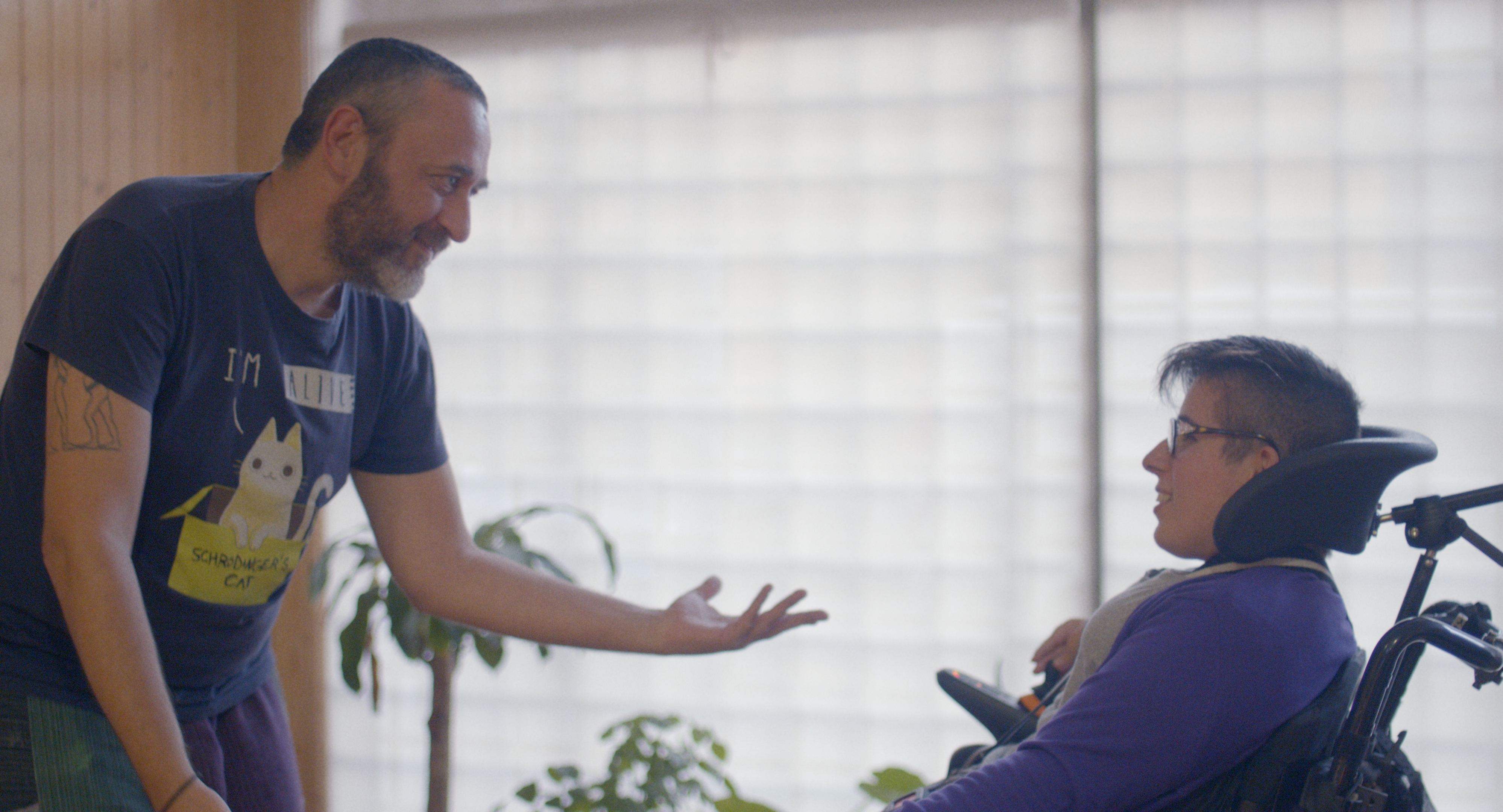 Τα ερωτήματα που είναι πανανθρώπινα. Πραγματικά η αναπηρία, τουλάχιστον για εμένα, είναι ένα θέμα που μας αφορά όλους. Αυτό είναι που ελπίζω να μείνει στο θεατή. Μπορεί η εποχή μας να έχει διευκολύνει το να μιλάς για το θέμα της οικειότητας, τη σεξουαλική εμπειρία, μέσω κάποιων application, αλλά αισθάνομαι ότι γίνεται όλο και πιο δύσκολο. Το άλλο θέμα είναι το θέμα της οικειότητας, να συνδεθείς πραγματικά με μια άλλη ψυχή και να μοιράζεστε αυτήν την εμπειρία. Αισθάνομαι ότι αυτά τα ερωτήματα με έναν ωραίο τρόπο τα θίγει η ταινία σαν μεγεθυντικός φακός. Είναι πανανθρώπινα θέματα. Κάποιοι συμπολίτες μας έχουν μεγαλύτερη δυσκολία σε κάποια θέματα, είτε είναι η κίνηση είτε η πρόσβαση. Αλλά στο βάθος πάντα υπάρχουν αυτά τα υπαρξιακά θέματα που για μένα συνδέονται άμεσα και με τον έρωτα.
